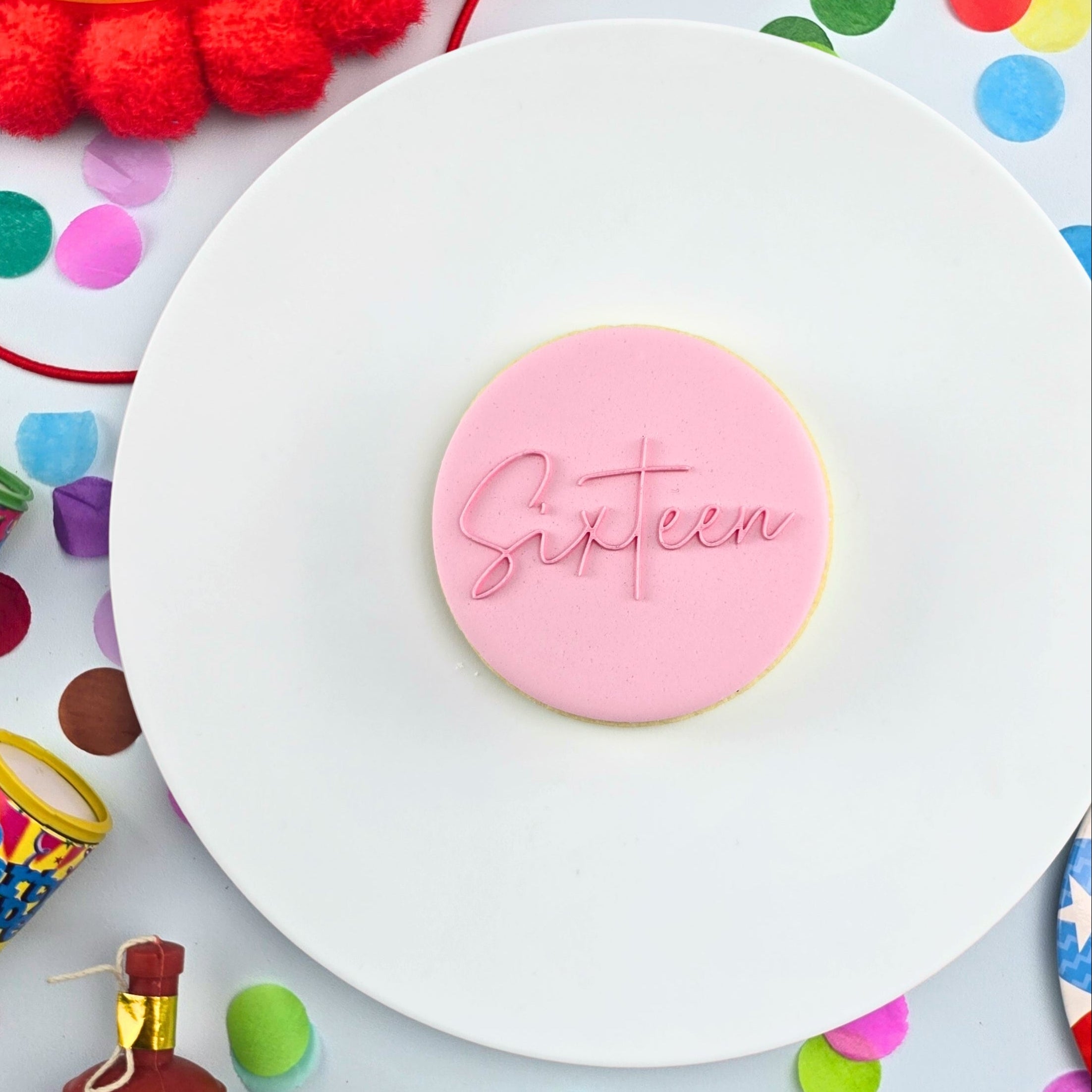The design has been made to perfectly suit a 70mm round standard size cookie as seen in the images but as it's centered within a 100mm square non-stick debosser it is suitable for many shapes and size cookies.