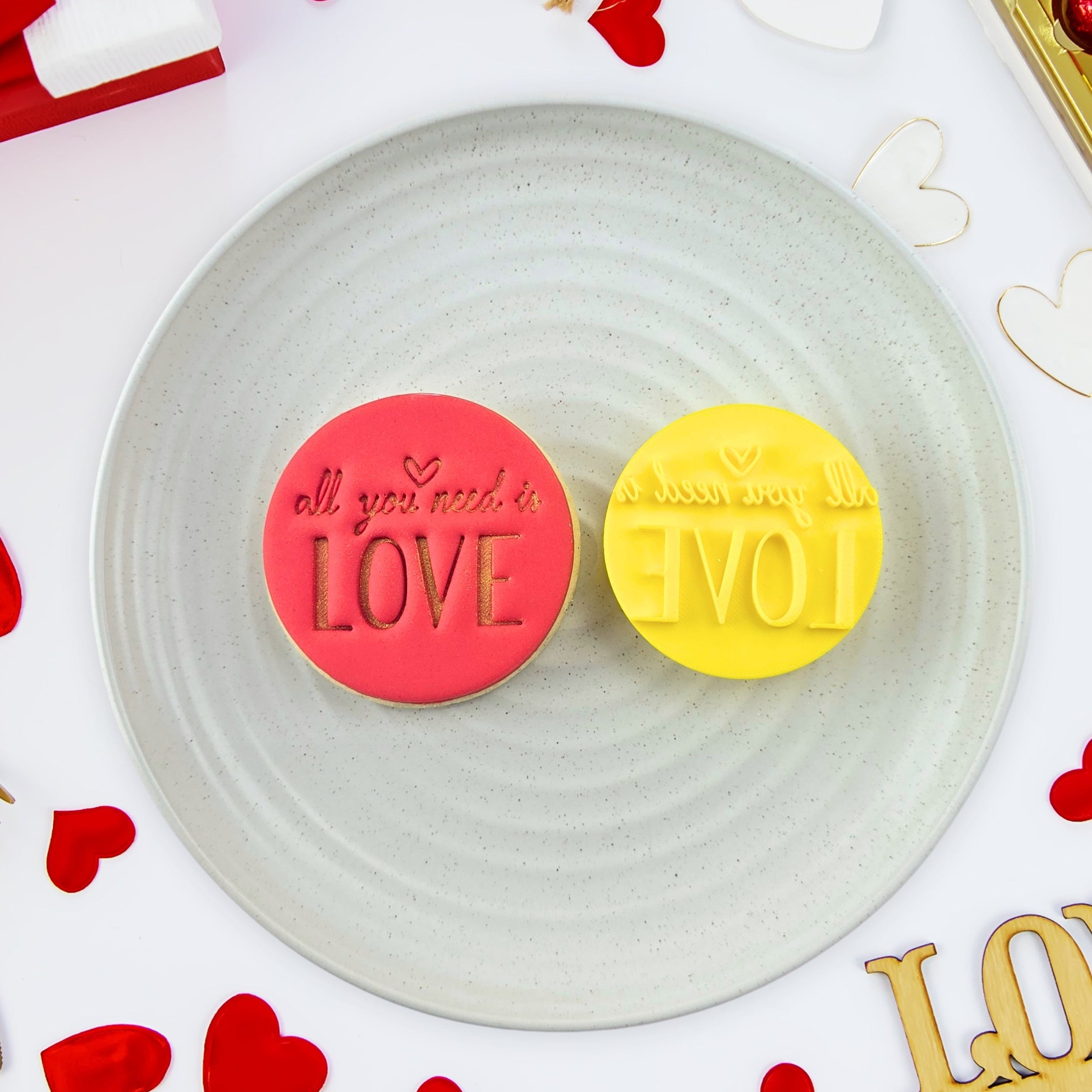 Show someone how much you love them by making a batch of cookies with a sweet note using our All You Need Is Love Embosser!
