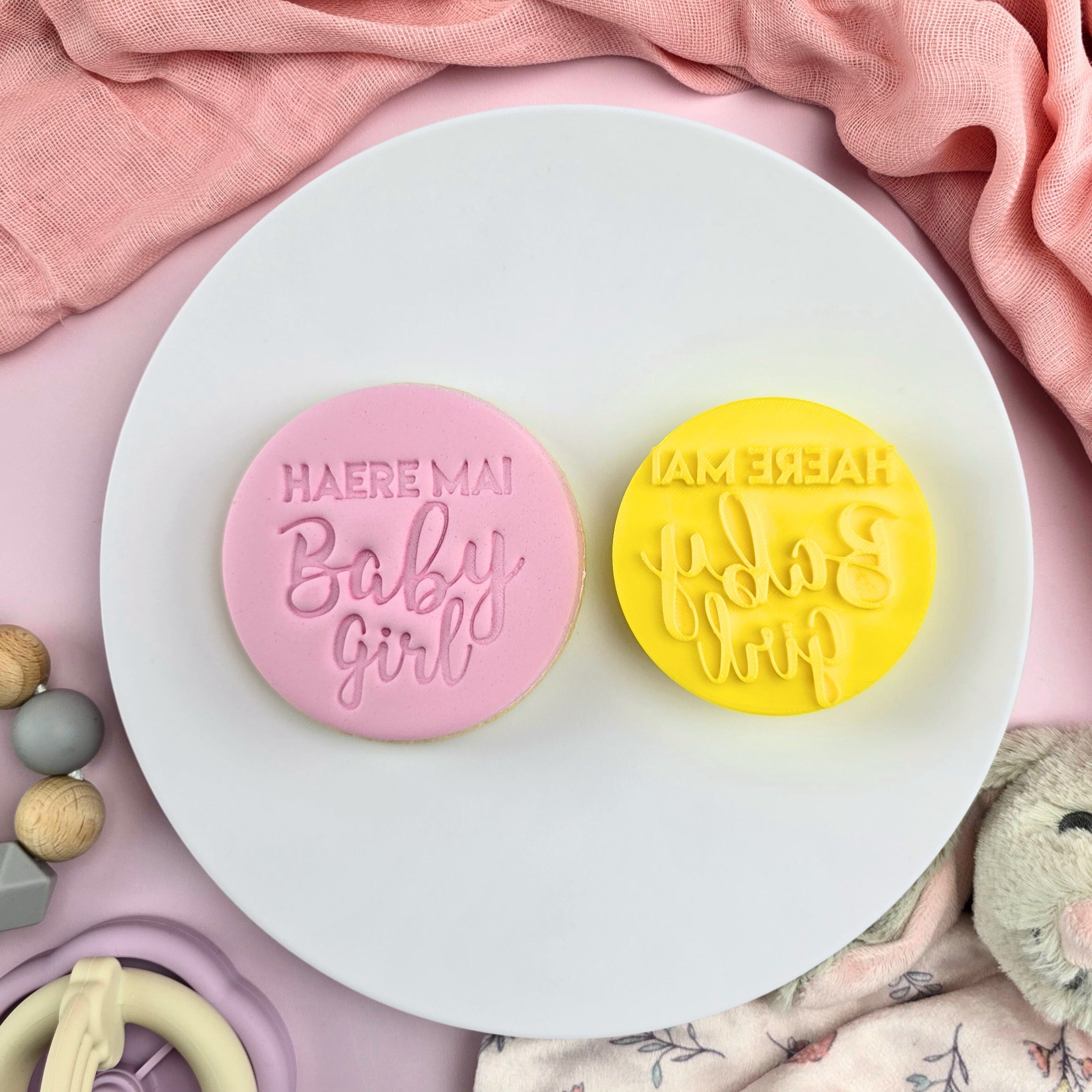 Haere Mai Baby Girl translates to "Welcome Baby Girl" in Maori.